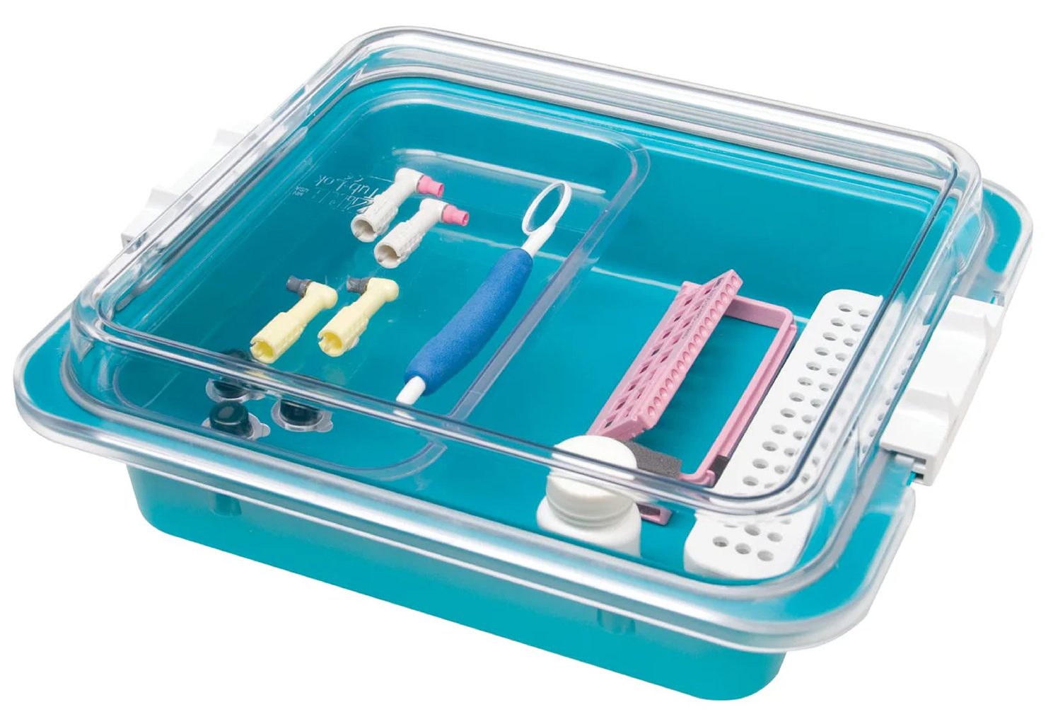 A complete system of tubs, trays, and accessories designed to organize instruments and materials by procedure, using vibrant color coding to simplify setup and reduce errors.